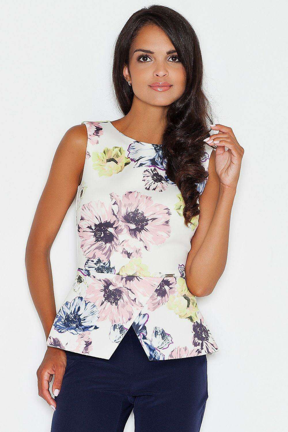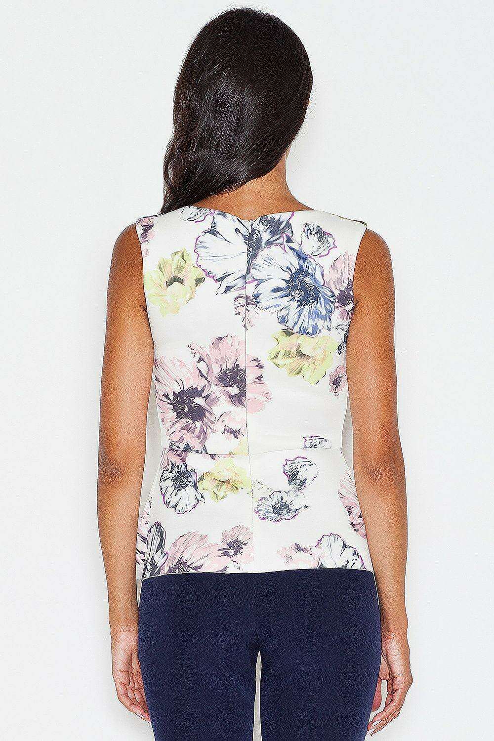 Chic Floral Sleeveless Blouse with Elegant Basque and Boat Neck Design