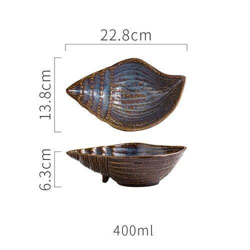 Japanese Retro Ocean and Botanical Ceramic Plates - Irregular Shapes for Elegant Dining Experience