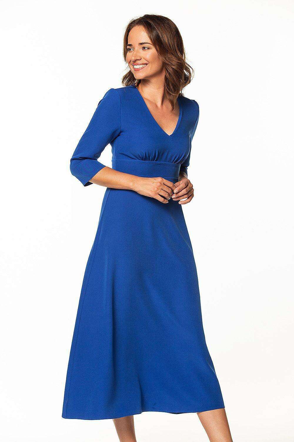 Elegant Maxi Dress with 3/4 Sleeves and Zipper Fastening