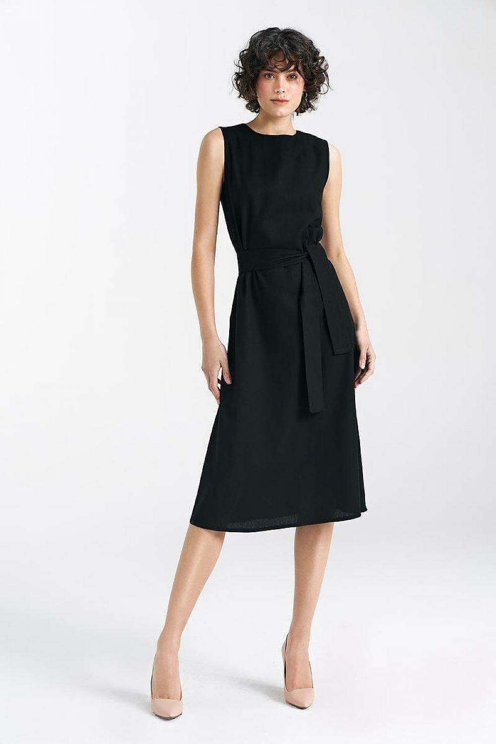 Elegant Midi Summer Dress With Waist Cinching Belt Classic