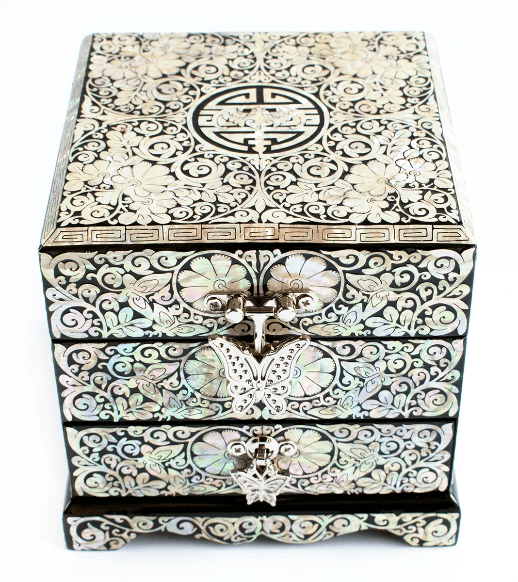 Transform your jewelry storage experience with our Luxurious Mother of Pearl Keepsake Box, where beauty meets functionality!