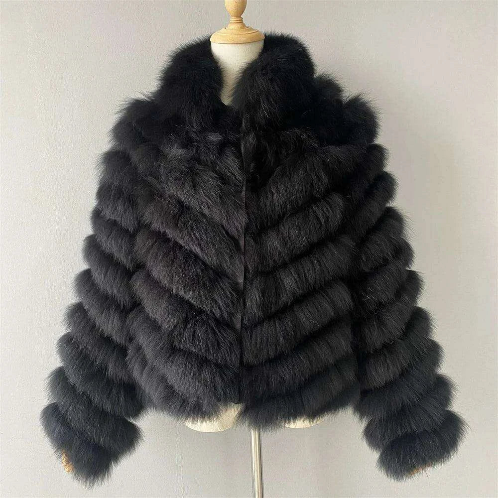 Reversible Luxury Women’s Winter Fox Fur Jacket with Tailored Silk Lining