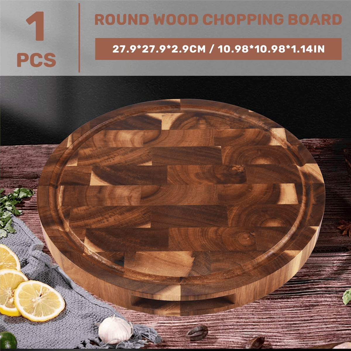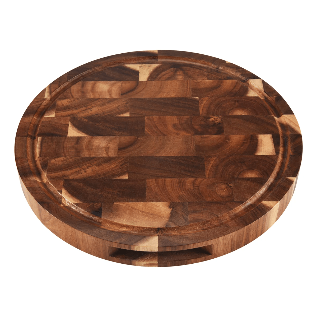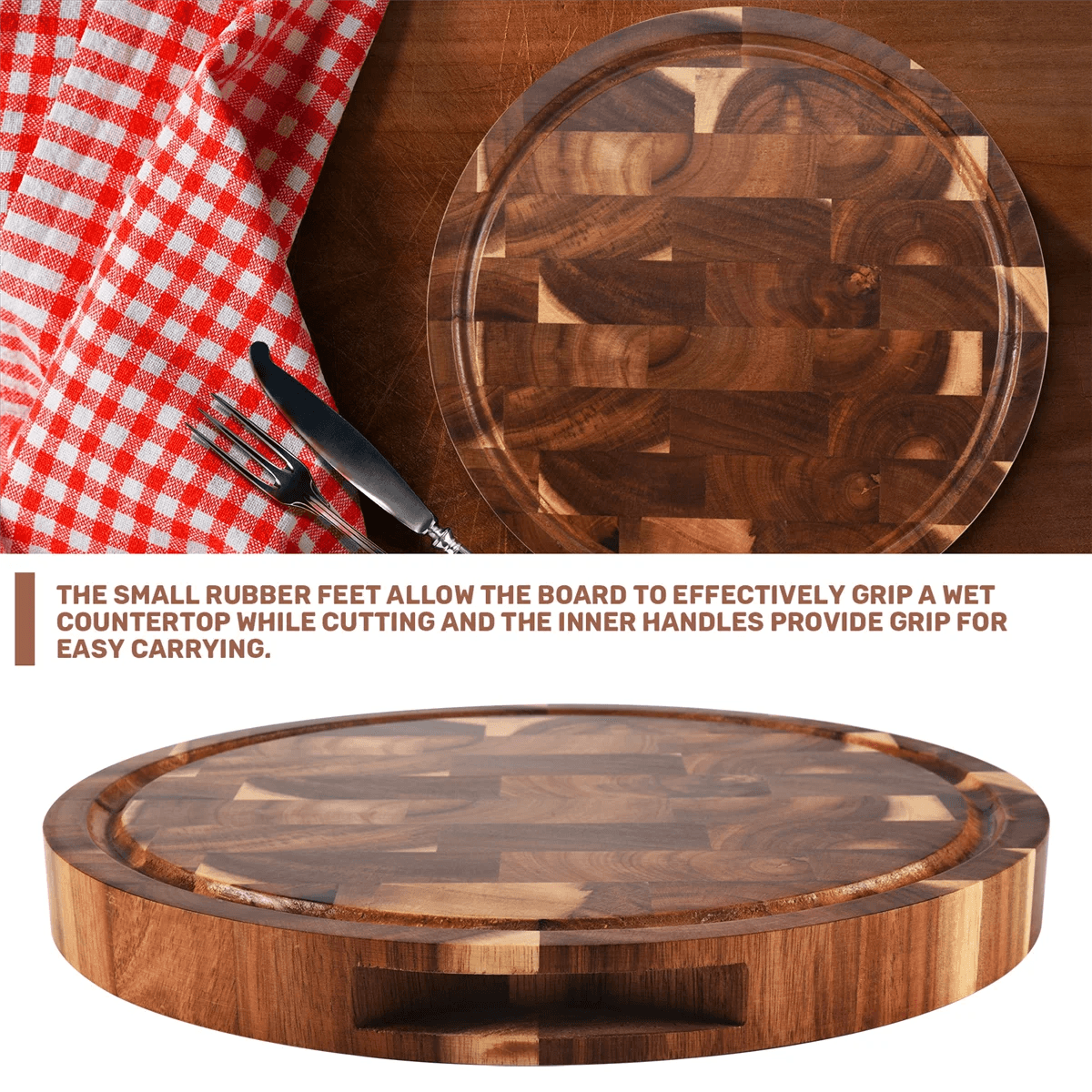 Elegant Round Acacia Wood Butcher Block with Ergonomic Handles and Non-Slip Base