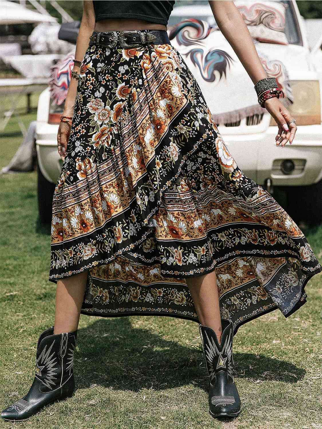 Chic Ruffled Hem High-Low Viscose Skirt - A Stylish Essential for Any Occasion