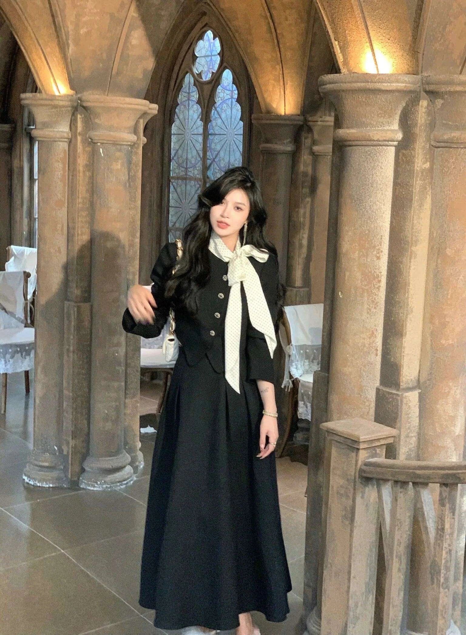 Introducing the Elegant Vintage A-Line Blazer Suit Set for Women - Autumn 2023 Long Sleeve Coat in Chic Hues, a stunning two-piece ensemble designed for the modern woman who appreciates classic elegance. This suit set seamlessly combines sophistication and vintage charm, making it a perfect addition to your autumn wardrobe.