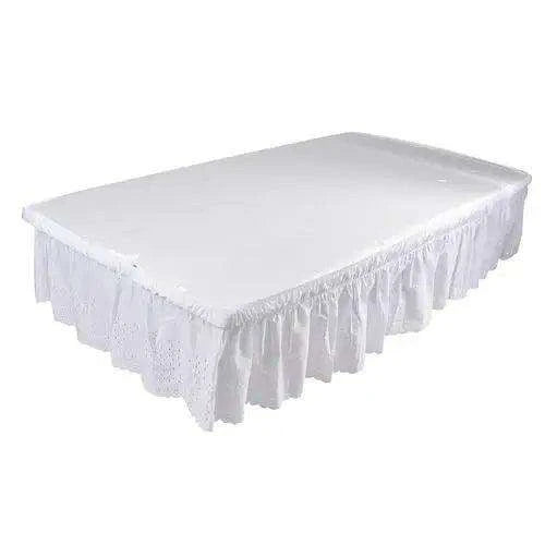Embroidered Floral Cotton Queen Bed Skirt - Elastic Fit with Elegant Finish
