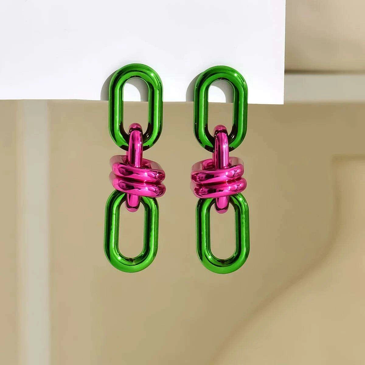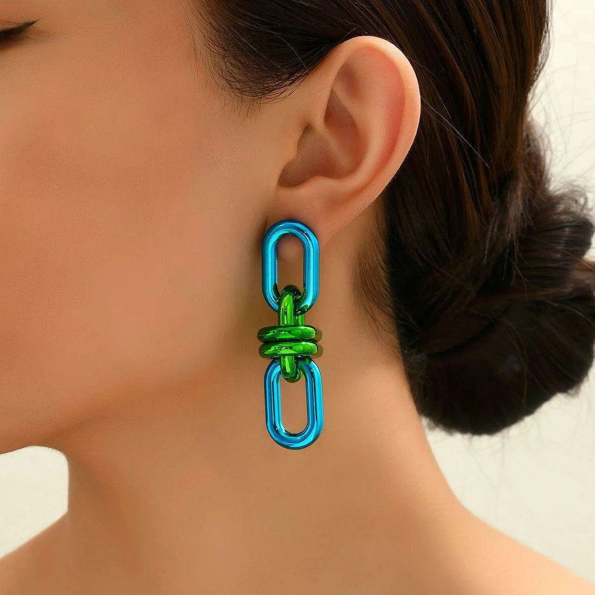 Emerald Edge Geometric Chain Earrings - Punk Chic Dangle Statement