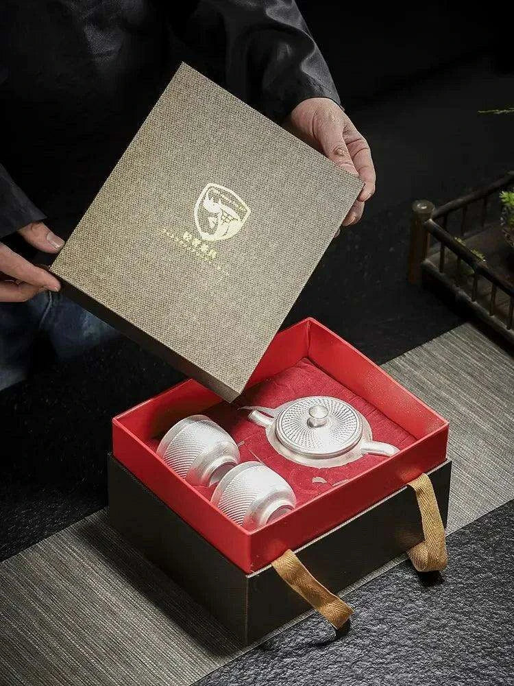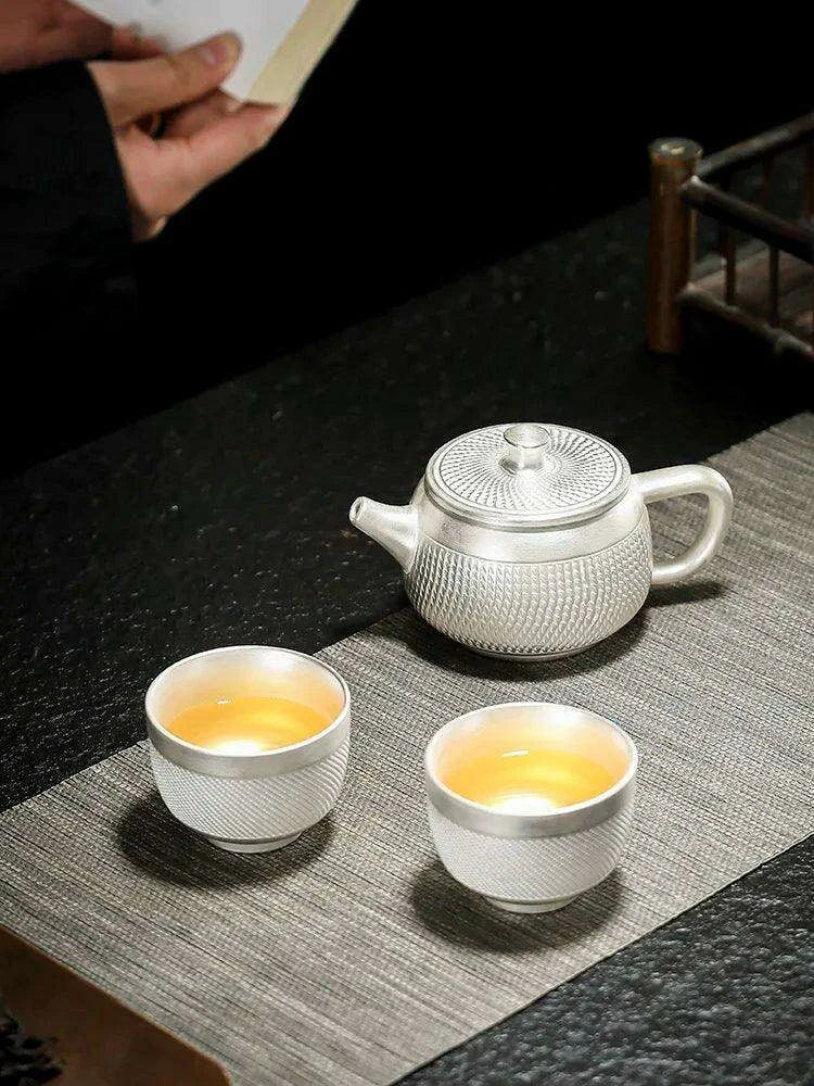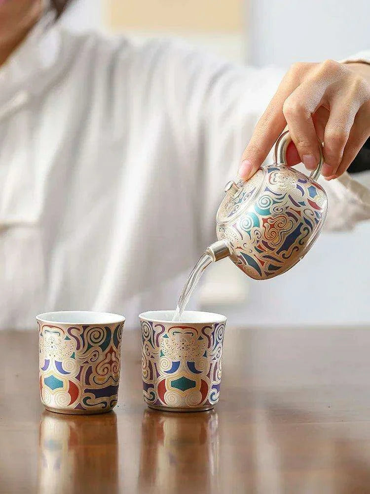 Luxurious Silver Tea Set with Exquisite Gilded Porcelain Mugs – Perfect for Special Occasions and Gifting