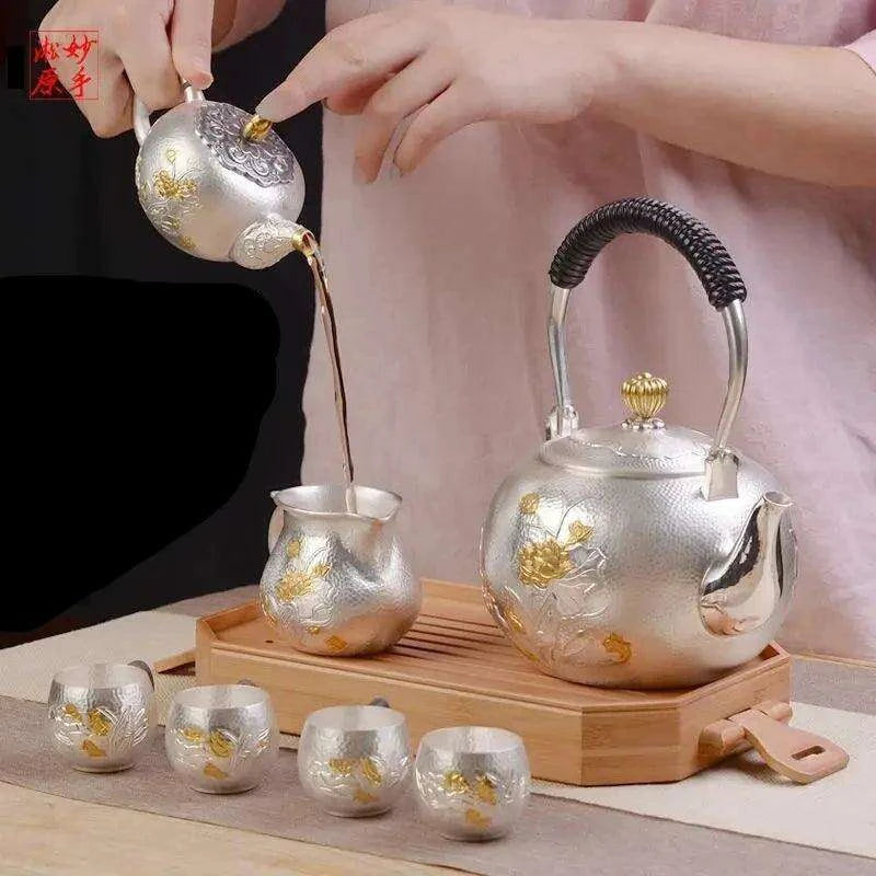 Elevate your tea-drinking experience with the Exquisite Handcrafted Silver Kung Fu Tea Set. It's not just a tea set; it's a timeless investment in elegance and health.