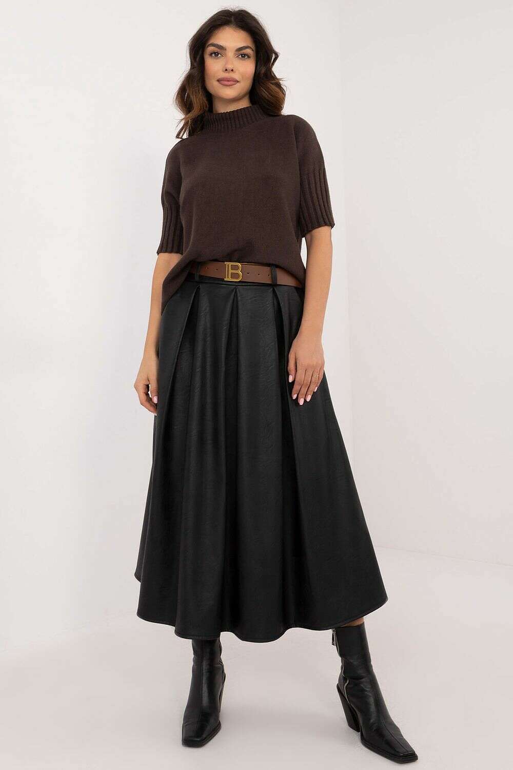 Discover the Skirt model 202775—a refined, warming imitation leather skirt designed for everyday wear, office style, and formal occasions. The midi-length cut offers a balanced silhouette that works for a range of tops and footwear.