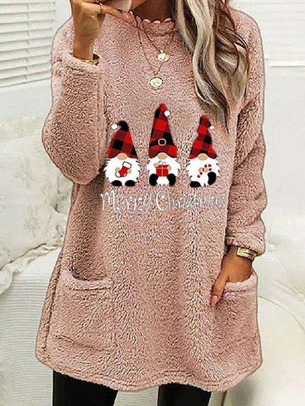 Festive Plush Christmas Sweatshirt for Women with Cozy Pockets