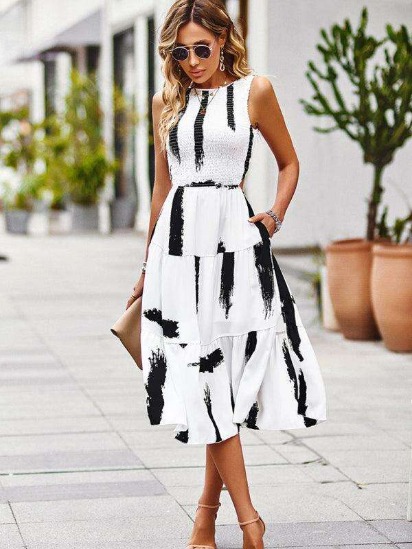Charming Blossom: Women's Sleeveless Floral Print Dress