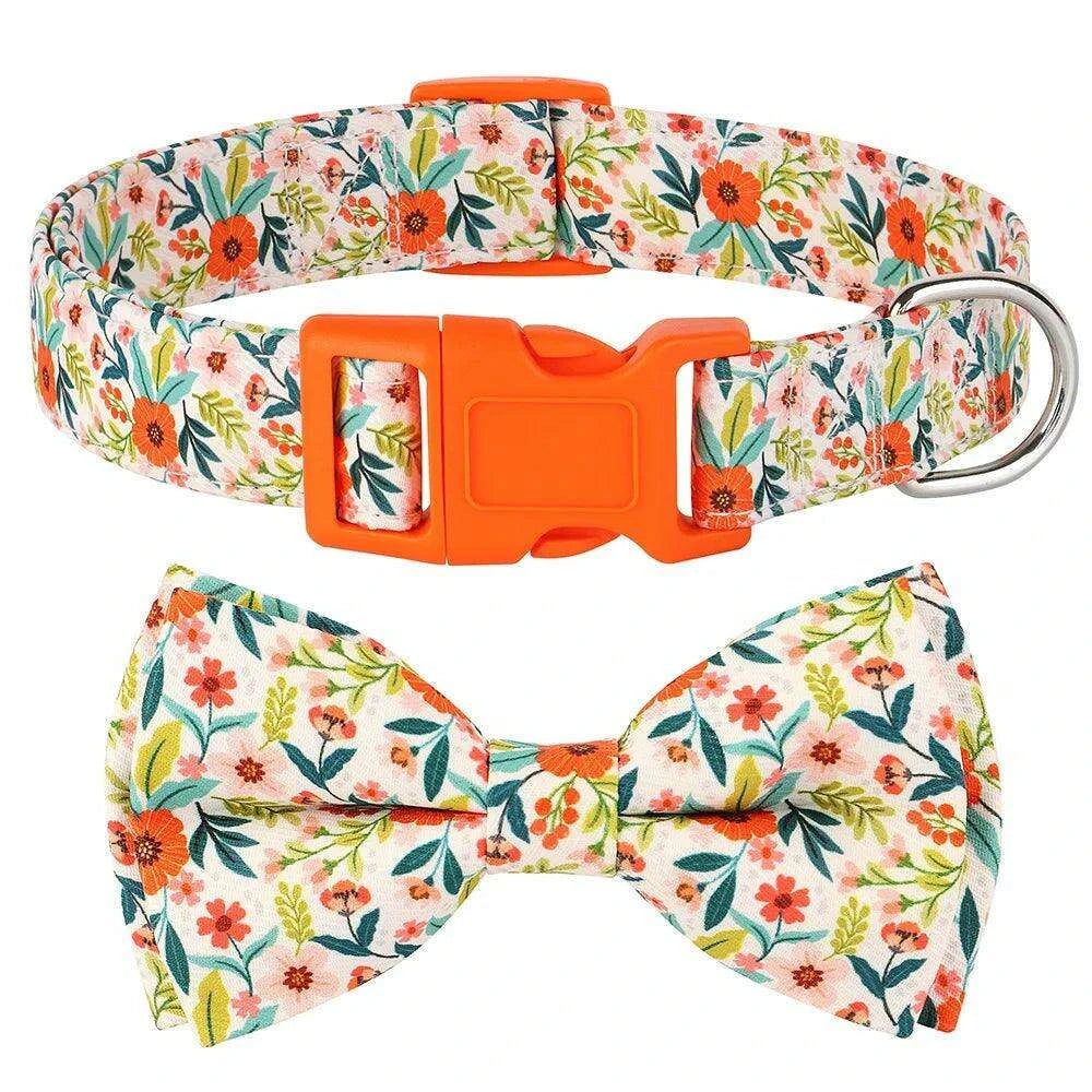 Floral Patterned Adjustable Dog Collar with Bowknot - Padded Nylon for All Breeds