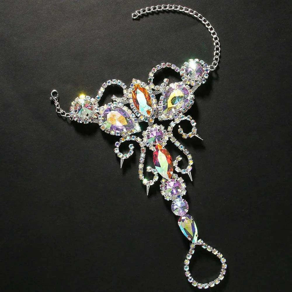 Enhance your style and make a bold fashion statement with the AB Color Crystal Geometric Toe Chain Anklet. This elegant foot jewelry is perfect for any occasion, whether you're performing belly dance routines or enjoying a relaxing day at the beach.