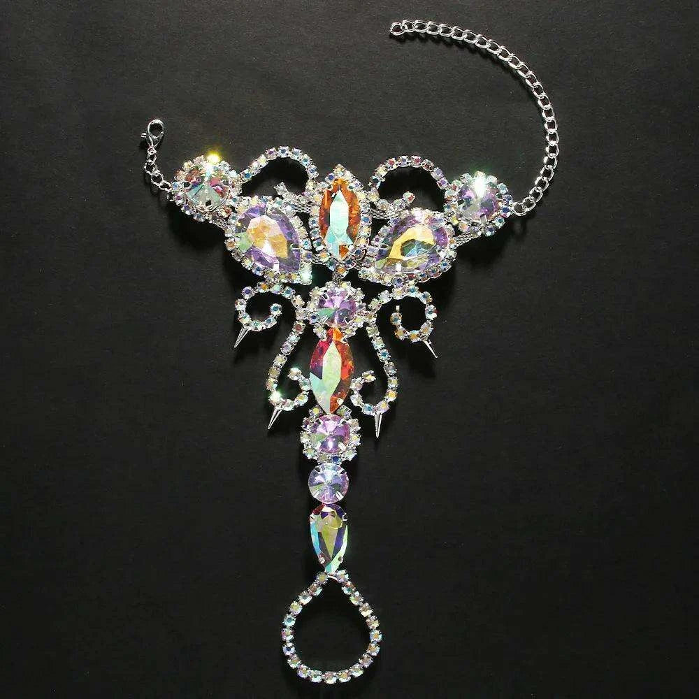 AB Color Crystal Geometric Toe Chain Anklet - Chic Foot Jewelry for Dance and Beach Wear
