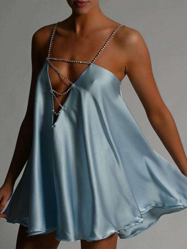Glamorous Women's Heavy Metal Diamond Chain Backless V-Neck Dress