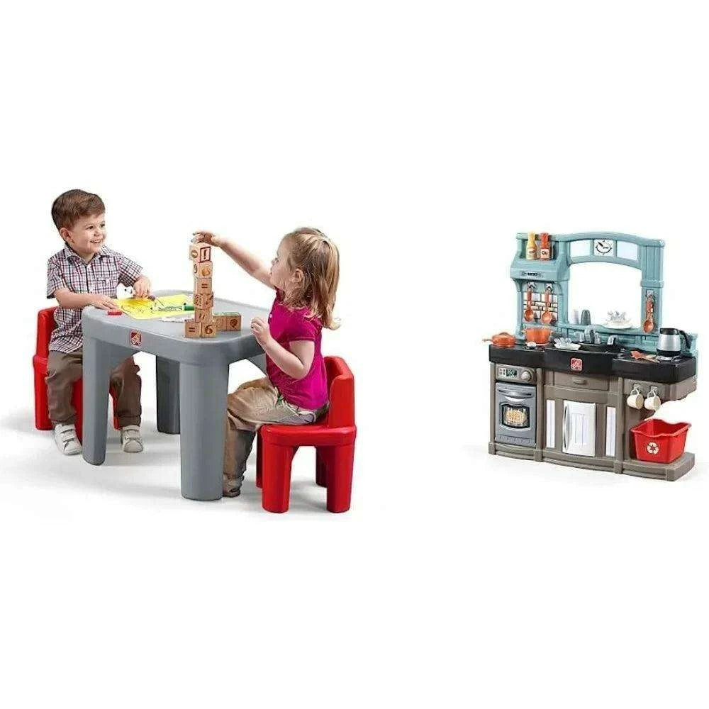 Kids Creative Play Table and Chair Set in Charcoal and Crimson - Durable Toddler Furniture for Imaginative Fun