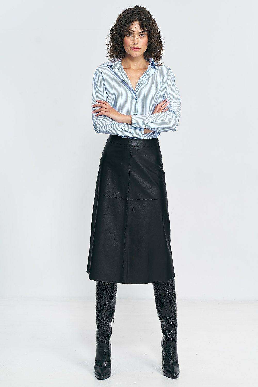 Elevate your wardrobe with our Imitation Leather Trapeze Midi Skirt, a refined piece that blends sophistication with everyday comfort. Crafted from high-quality imitation leather, this skirt flatters your silhouette while delivering a flattering, comfortable fit you can wear from day to night.