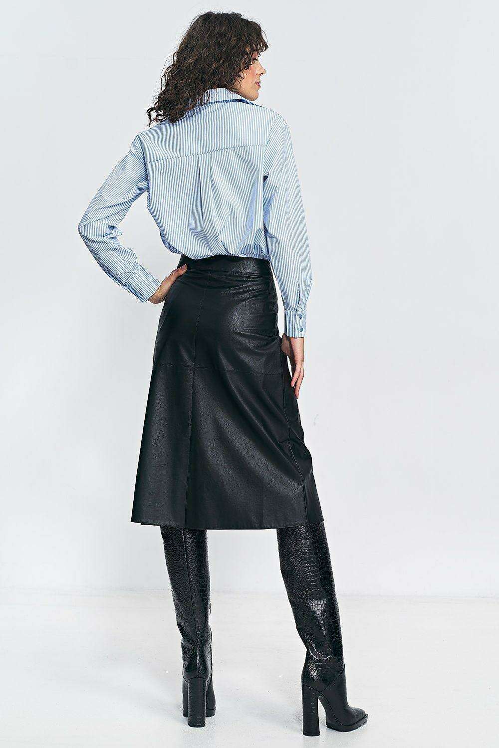 Imitation Leather Trapeze Midi Skirt For Women Black