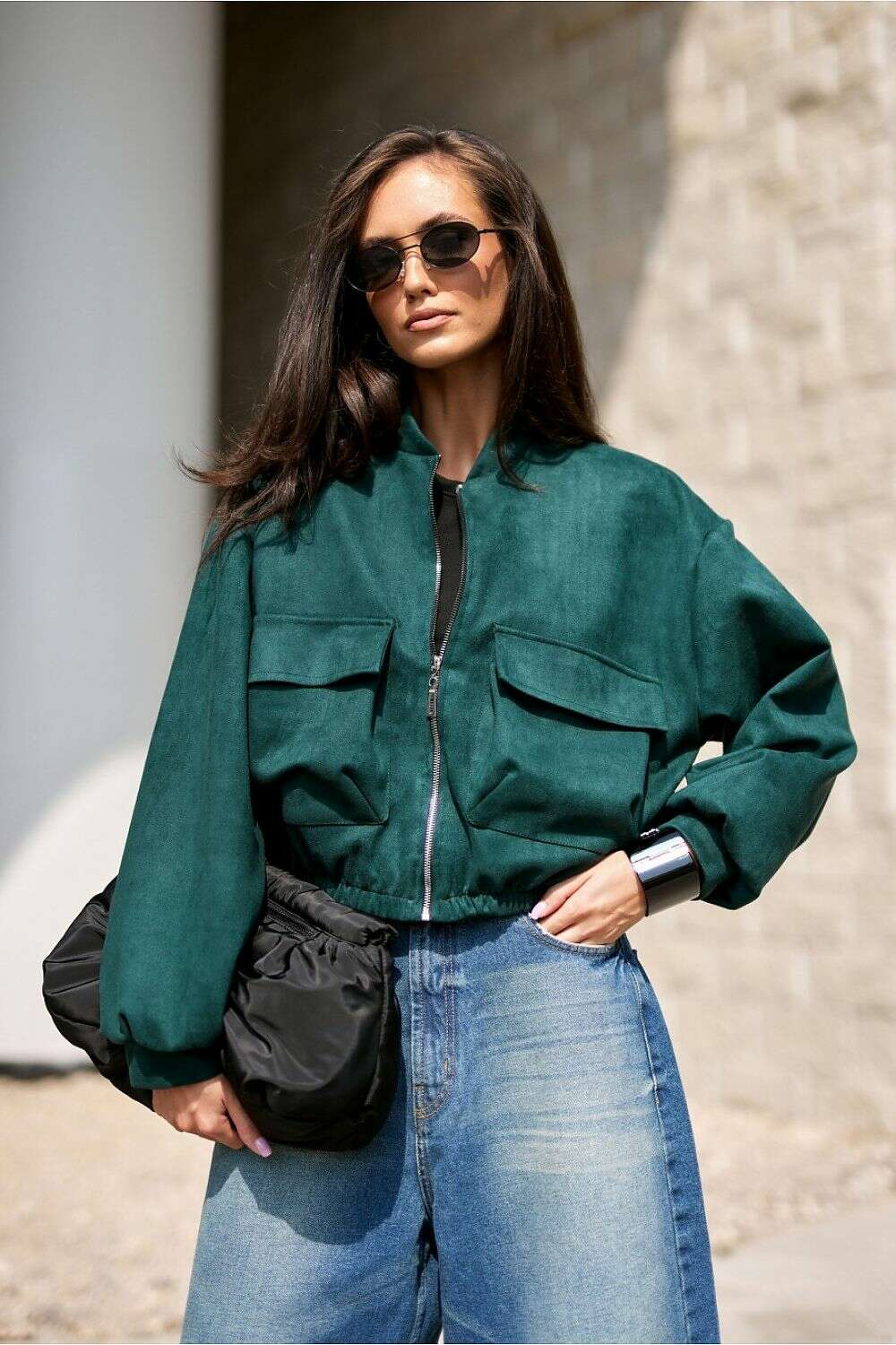 The Vivara bomber jacket is made of high-quality suede imitation, the material is soft to the touch, durable, and has an elegant, matte finish. The jacket stands out with its loose, oversized cut, comfortable zip fastening, and large front patch pockets that give it an urban, modern character. Made in Poland with attention to every detail, it impresses with precision and durability. It will work perfectly in everyday stylings with jeans and sneakers, and paired with elegant trousers will create an interesting, fashionable contrast.