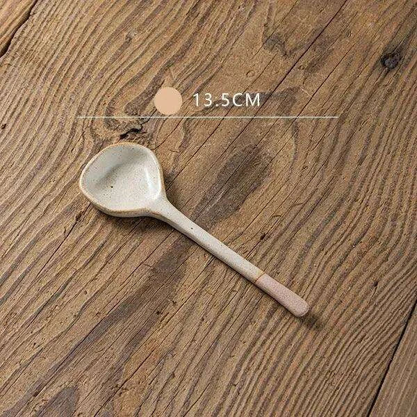 Japanese-Inspired Vintage Stoneware Soup Spoon with Extended Handle - Elegant Kitchen Tableware for 2024