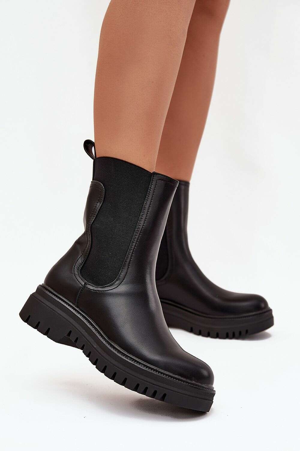 Women's chelsea boots made of eco leather are a comfortable and stylish choice for everyday wear. Set on a flat heel and platform, they provide comfort and stability throughout the day. Rounded toes give them a subtle character, and the slip-on style makes them easy to put on. Perfect for casual outfits, these boots combine elegance with functionality.