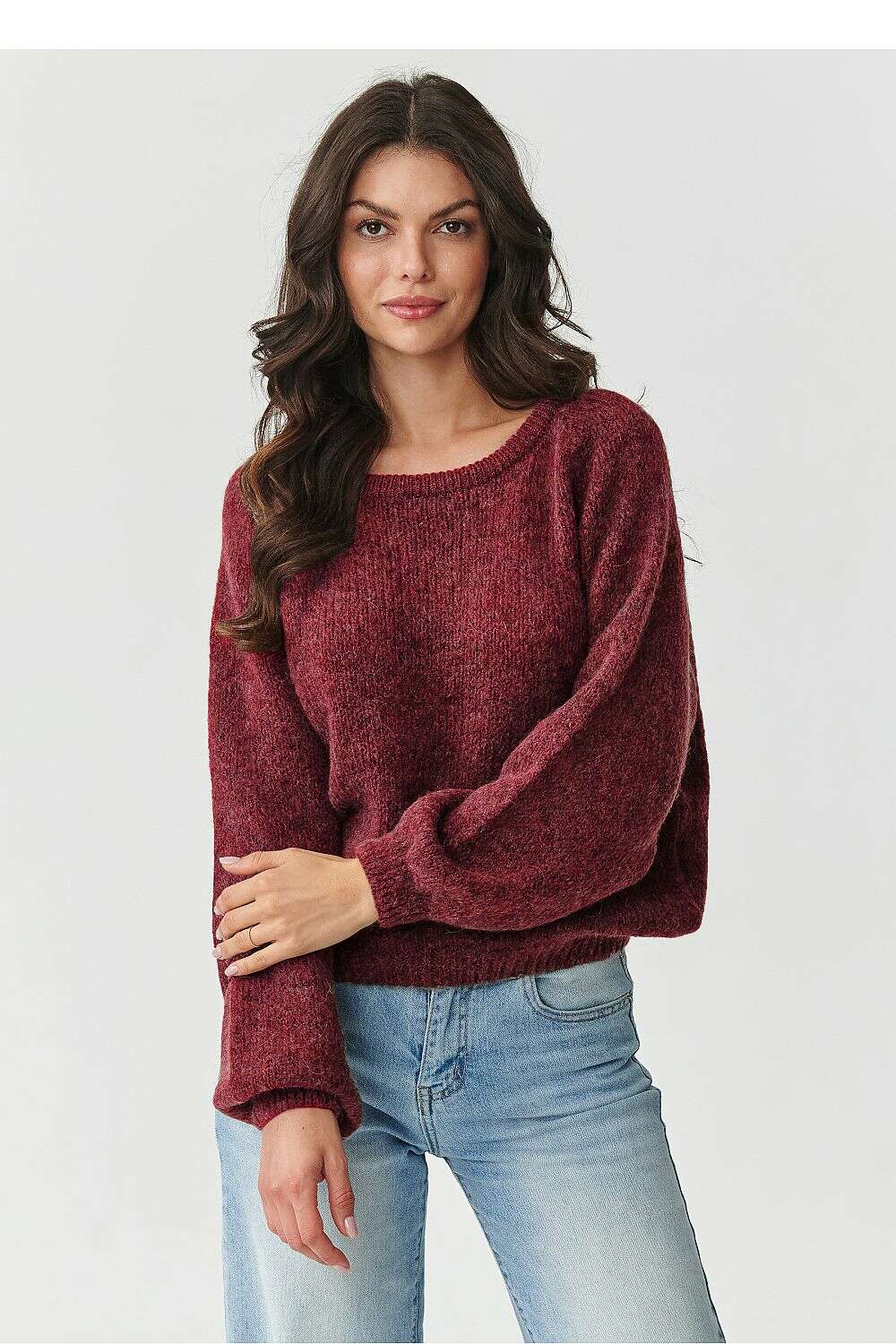 This women's sweater is a synonym of elegance and comfort, an ideal choice for women who appreciate luxurious materials and timeless style. It has been made from the highest quality blend of kid mohair, wool, polyamide, and acrylic, making it exceptionally soft, warm, and pleasant to the touch. Kid mohair and wool give it fluffiness and natural thermal insulation, while the addition of acrylic and polyamide makes the sweater durable, flexible, and resistant to deformation. Its simple, classic cut with delicate finishing makes it perfect for everyday styling with jeans, as well as for more elegant outfits with cigarette pants or a skirt. The neckline of this sweater is classic, with a slightly rounded finish at the neck, which beautifully emphasizes the collarbone, adding femininity, while remaining very practical - it does not constrict, does not squeeze, and works great in everyday wear. The sweater will not only wrap you in warmth, but also highlight your style with a wide range of trendy shades: gray melange, black, bottle green, burgundy, beige, mocha, ochre, earthy brown, and tobacco. It is a model that you will love for its versatility and luxurious character. Perfect for cold days, it will provide you with comfort while adding class to any outfit. Choose the color that best expresses your mood and create a look in which you will feel exceptional!