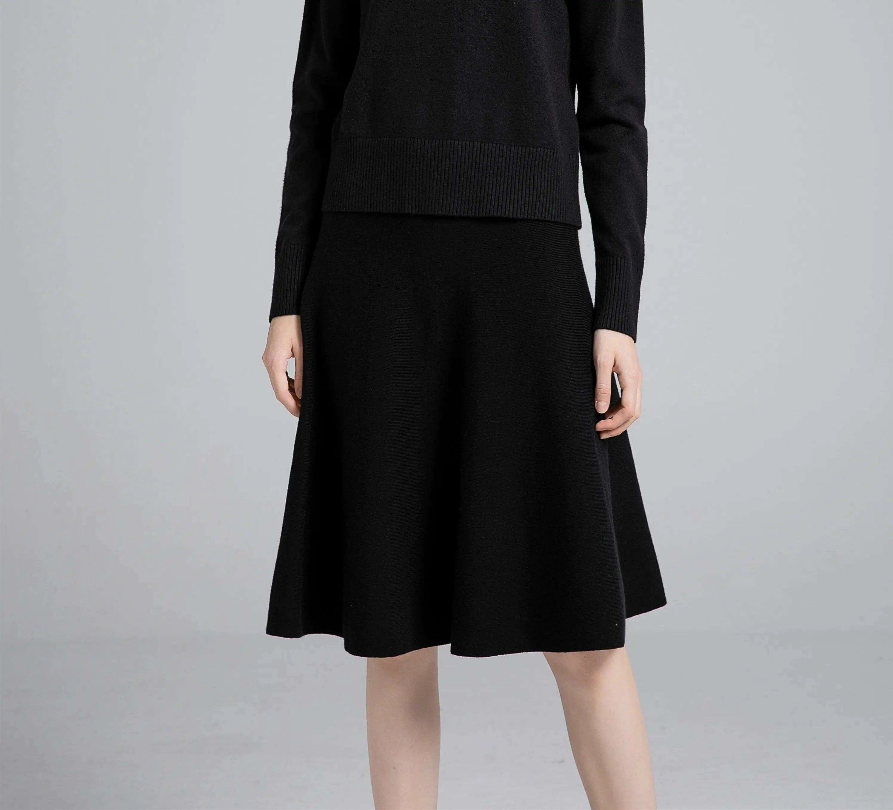 Knitted Top and Knee-Length Skirt Ensemble for Women - Autumn/Winter Style