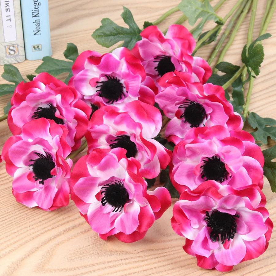 Lifelike Silk Anemone Flower Collection - 15-Piece Elegance Set for Home and Events