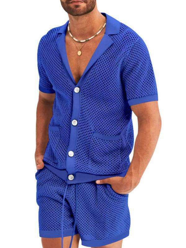 Casual Men's Knit Lapel Cardigan Suit Ensemble with Shorts
