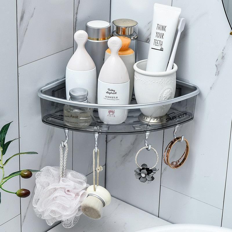 Gray Triangle Bathroom Organizer Rack - Stylish Plastic Storage Solution
