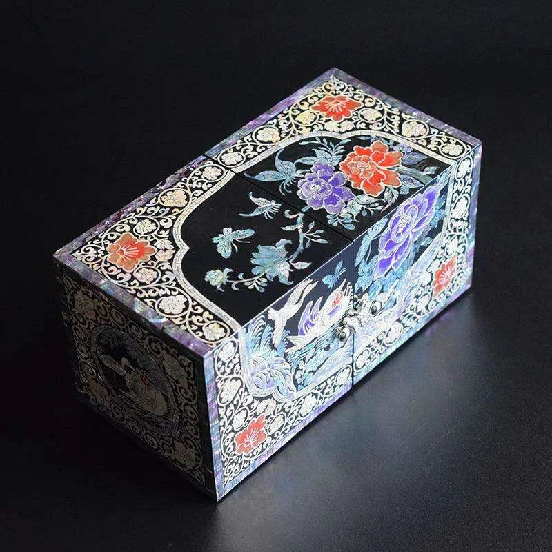 Opulent Mother of Pearl Jewelry Organizer with Butterfly and Peony Design - 4 Spacious Drawers- Très Elite- Très Elite