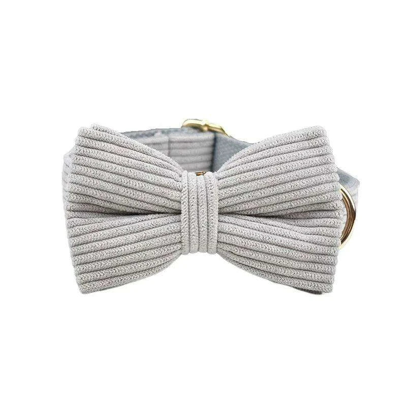 Personalized Light Grey Corduroy Dog Collar and Leash Set with Stylish Accessories