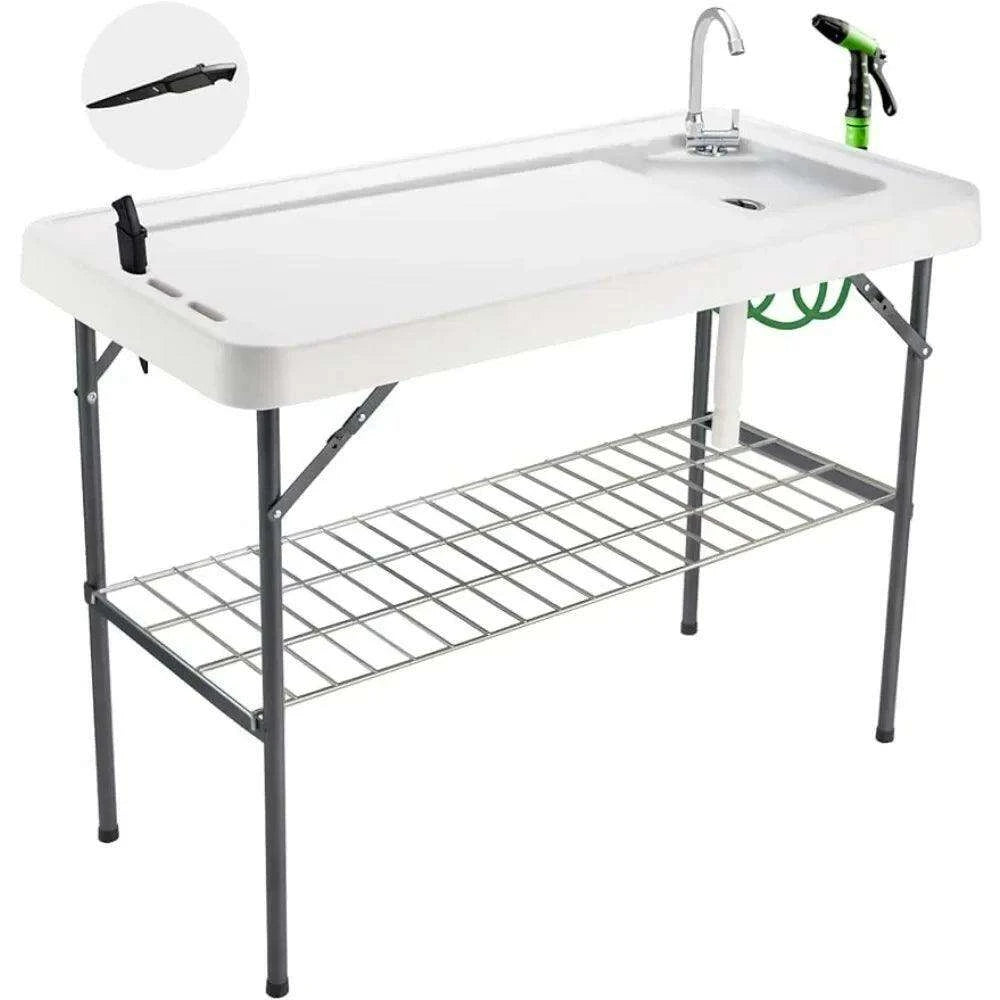 Portable Folding Fish Cleaning Table with Sink and Sprayer - Ideal for Outdoor Activities, Camping, and Fishing