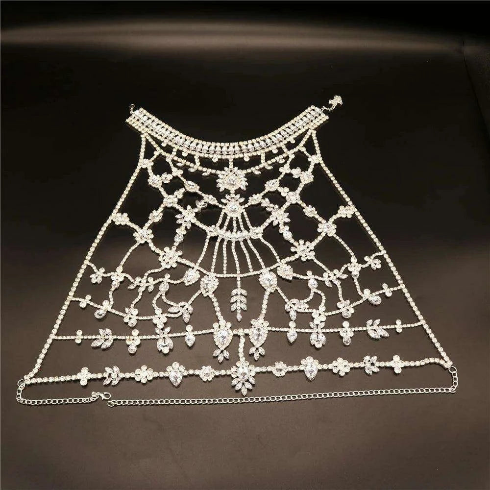Glistening Zircon Rhinestone Body Chain & Bra Necklace Set