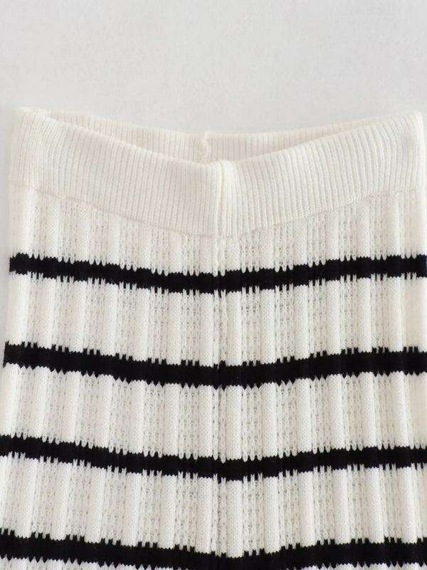 Chic Retro Striped V-Neck Top and High-Waisted Pants Set for Women