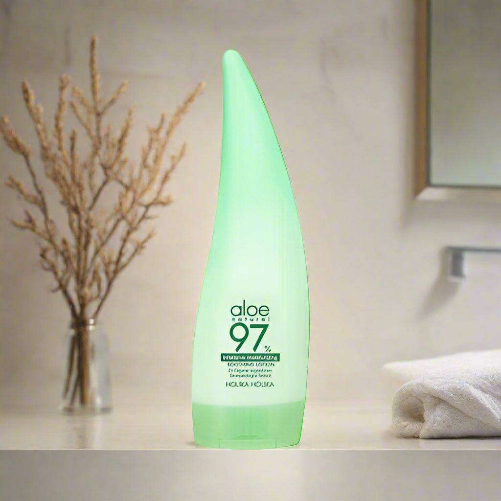 Unlock the secret to radiant skin with our Nourishing Aloe Ferment Lotion. Crafted with a remarkable 97% natural ingredients, this exceptional lotion utilizes the powerful benefits of organic Jeju aloe ferment to provide unparalleled hydration and nourishment for your skin.