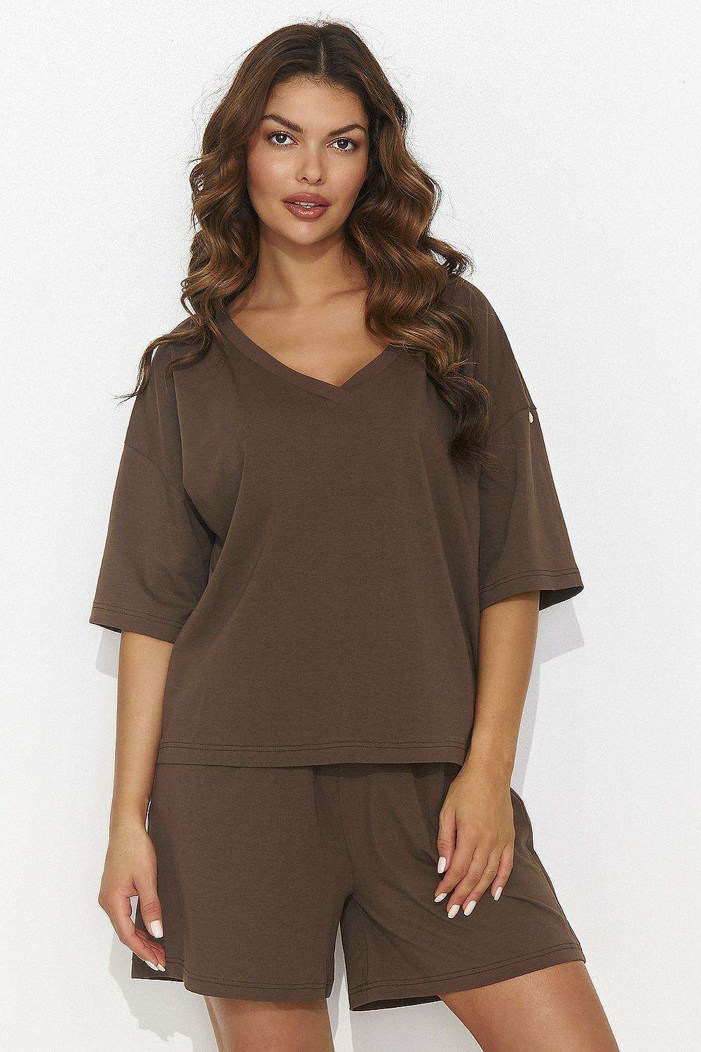 • Stylish Blouse: Featuring a heart neckline and elegant flared sleeves, the blouse combines a casual cut with a touch of sophistication.