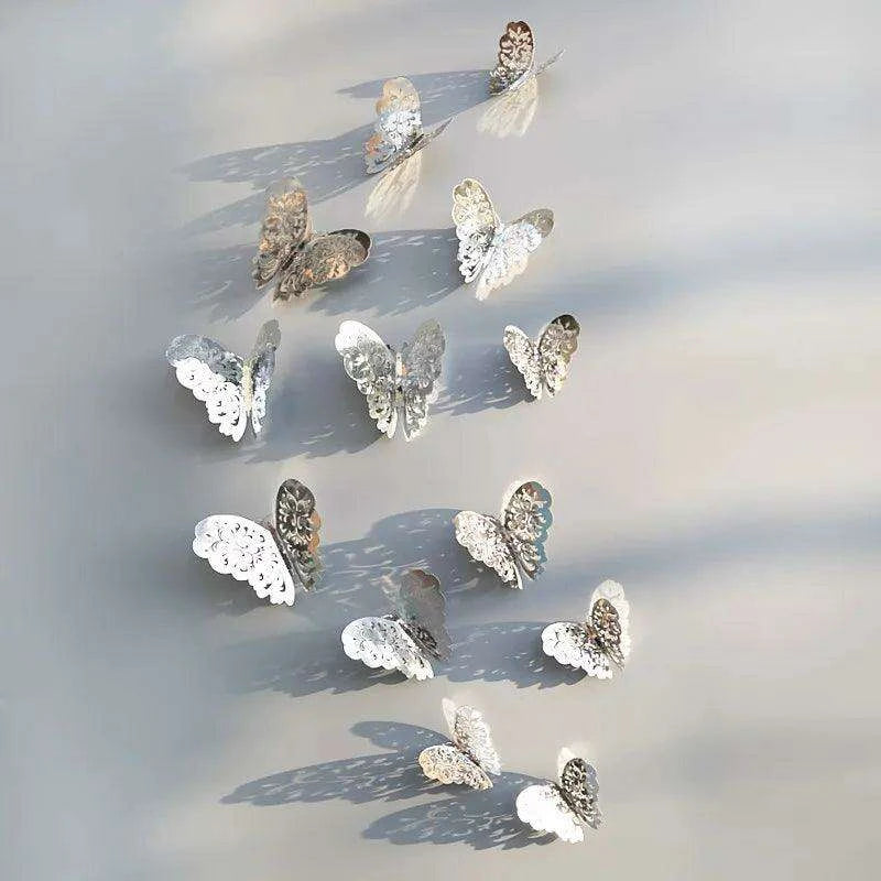 Transform your space with our Set of 12 Elegant 3D Butterfly Wall Stickers - Self-Adhesive Decorative Accents in Gold and Silver for Home and Event Decor. These exquisite wall decals are perfect for adding a touch of sophistication and whimsy to any room or event setup. Made from high-quality materials, our butterfly stickers not only look stunning but are also designed to last, making them a fantastic addition to your decor repertoire.