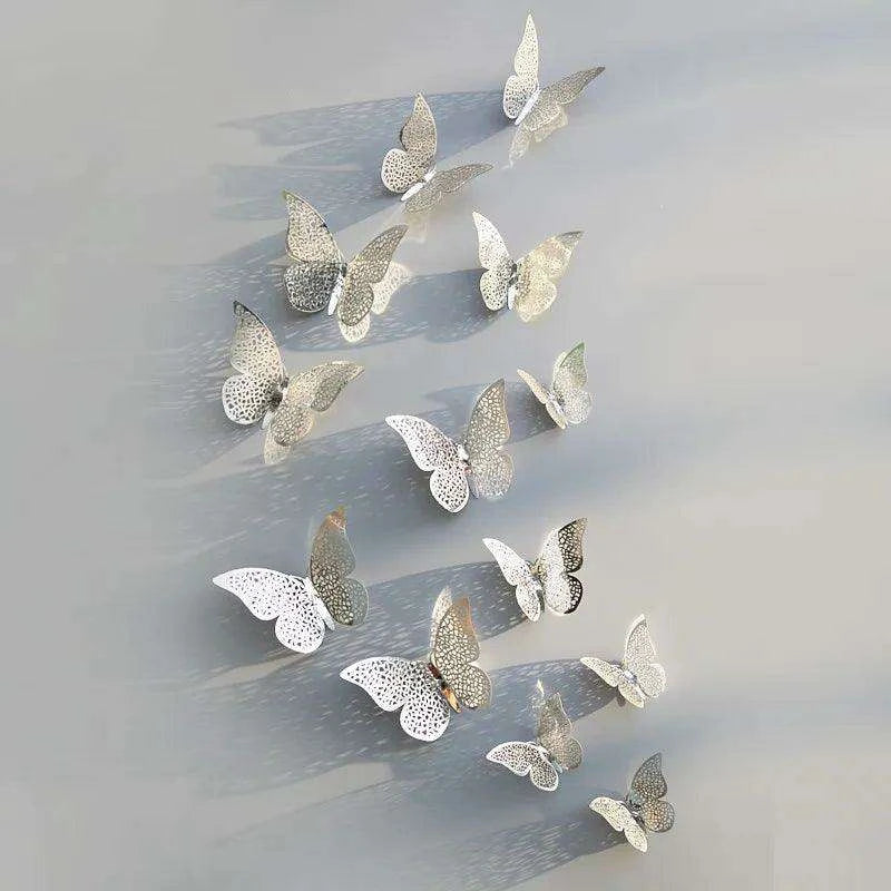 Transform your space with our Set of 12 Elegant 3D Butterfly Wall Stickers - Self-Adhesive Decorative Accents in Gold and Silver for Home and Event Decor. These exquisite wall decals are perfect for adding a touch of sophistication and whimsy to any room or event setup. Made from high-quality materials, our butterfly stickers not only look stunning but are also designed to last, making them a fantastic addition to your decor repertoire.
