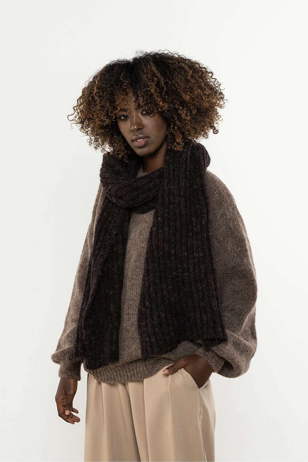 Soft to the touch and incredibly versatile, it features a stretchy ribbed texture that drapes beautifully around the neck and sits neatly under a coat.