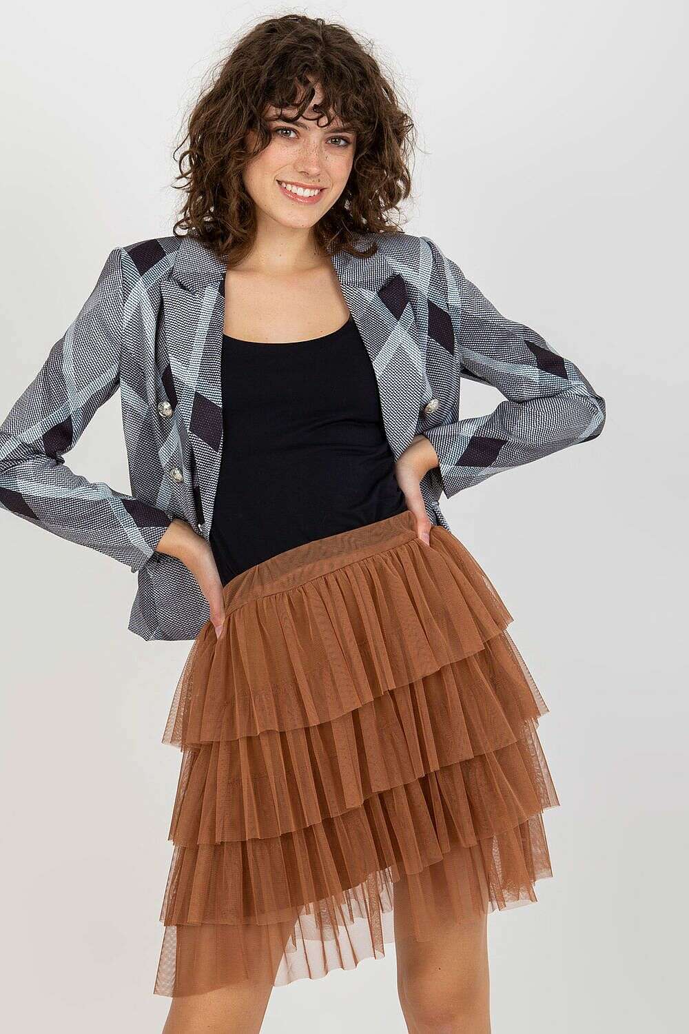 Tulle skirt with frills is an elegant proposition that will add lightness and feminine charm to any outfit. Made of high-quality polyester and viscose blend, it ensures comfort and beautifully drapes on the silhouette. The skirt has a smooth pattern and a mini length that accentuates the legs and gives the whole outfit a subtle yet distinctive character. Layers of tulle with delicate frills create a spectacular finish, perfect for special occasions such as parties, weddings, or evening outings. The model is equipped with a lining that guarantees comfort and provides full freedom of movement. The lack of fastening makes the skirt easy to put on and wear, and the elastic waistband (if present) further enhances comfort. It is a perfect choice for women who appreciate elegance in a fashionable way.
