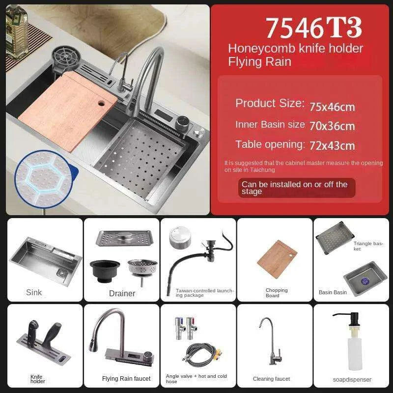 Transform your kitchen into a modern masterpiece with our Waterfall Sink Kitchen Set. Crafted from high-quality 304 stainless steel, this sink promises durability and an effortlessly sleek appearance that enhances any kitchen decor.