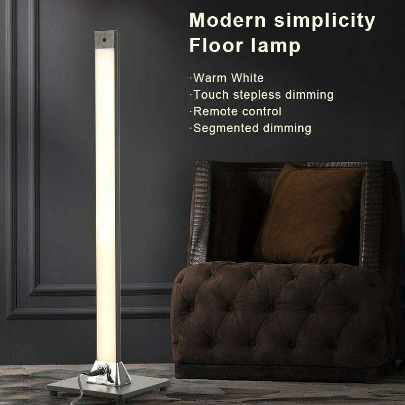 Sleek Remote-Controlled LED Floor Lamp with Dimmable Brightness for Sophisticated Indoor Ambiance..