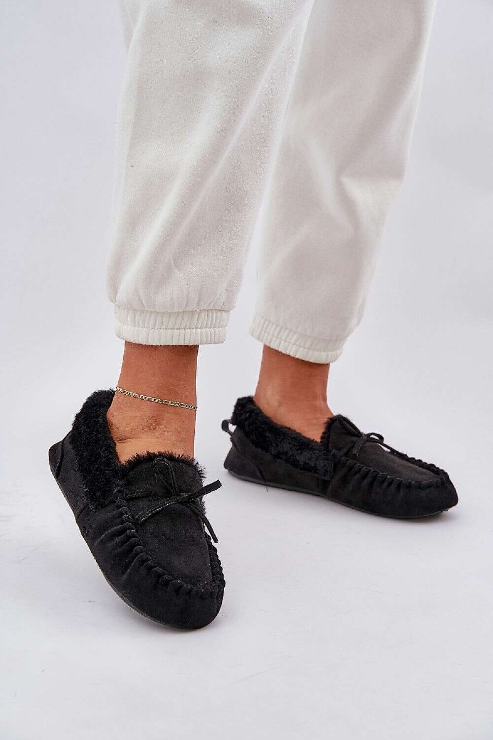 Moccasin slippers made of eco suede are a unique proposal for colder days, combining comfort and warmth. Made of soft eco suede, they guarantee wearing comfort, and the fur-lined interior provides pleasant warmth and softness. Their classic moccasin style makes them not only functional but also stylish.