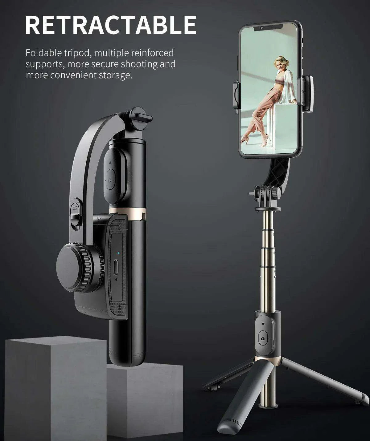 Elevate your smartphone videography to the next level with our all-in-one Smartphone Gimbal Stabilizer Kit. This innovative package includes a Gimbal Stabilizer, Bluetooth Tripod, and Selfie Stick, designed to help you create professional-quality videos effortlessly.