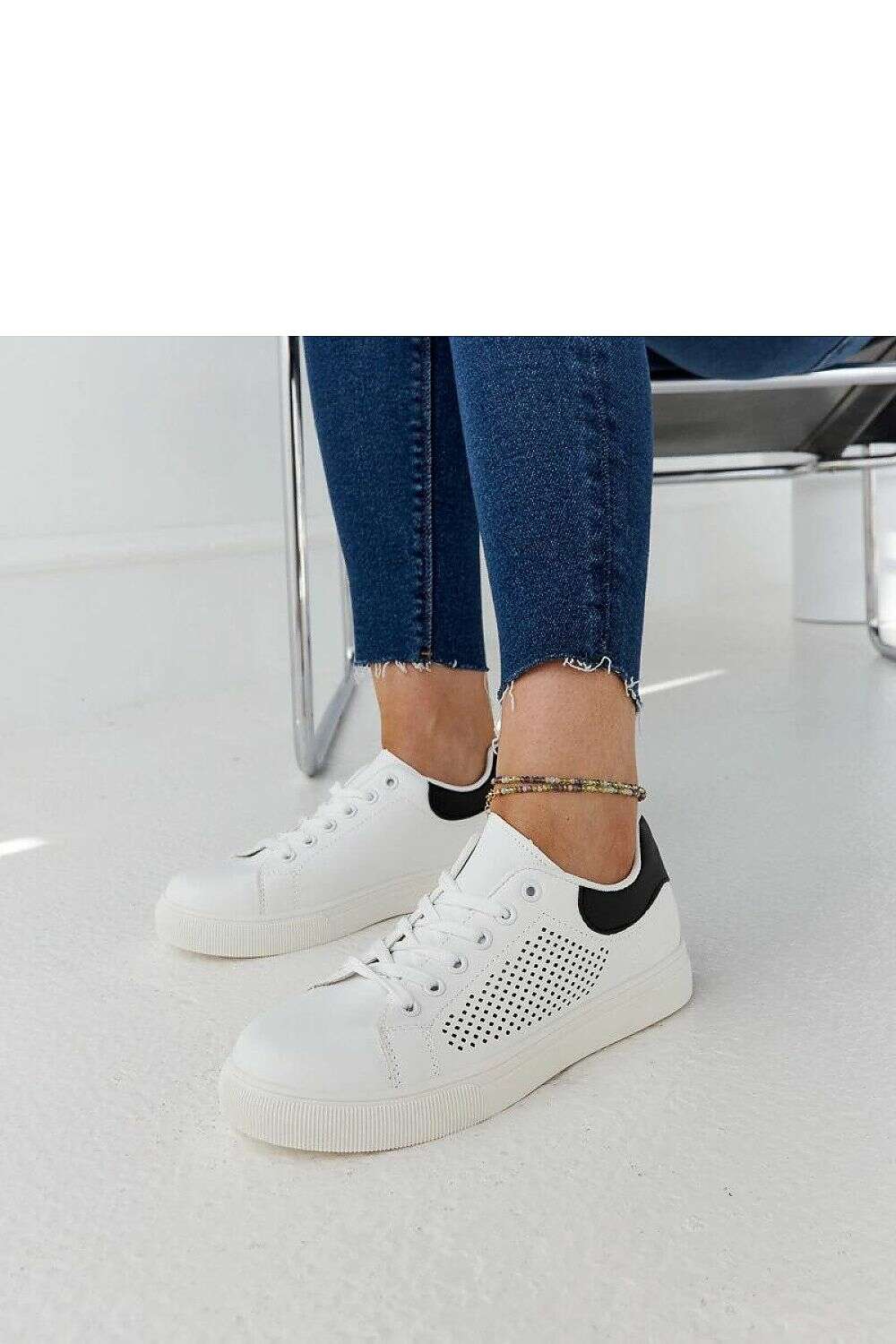 White openwork sneakers Semhar are the perfect proposal for summer. Made of high-quality synthetic leather zam, they are not only comfortable, but also stylish. Their white rubber sole adds lightness to them and makes them a perfect complement to summer stylizations. Fastened with a lace closure, they ensure a perfect fit to the foot. An excellent proposition for all fans of sporty, casual style.