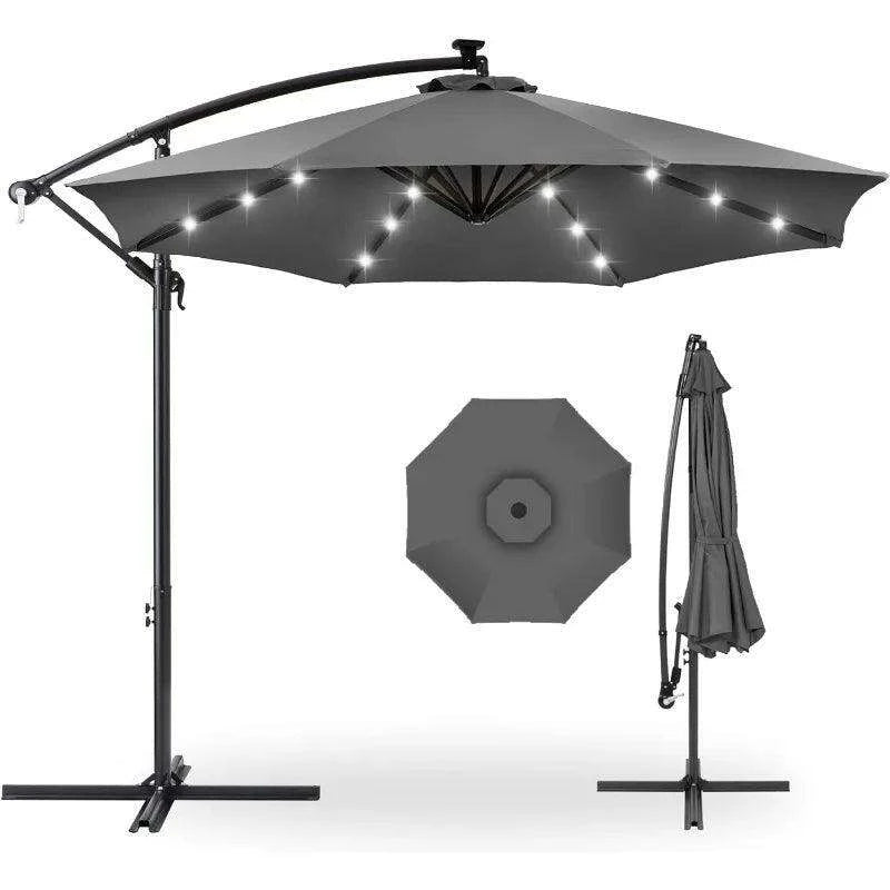 10ft Solar LED Offset Hanging Market Patio Umbrella