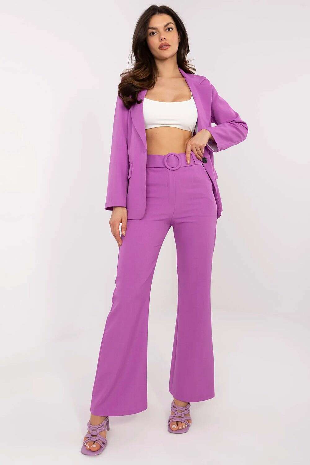 Designed for a flattering silhouette, the high waist smooths the midsection while the flared leg creates balanced proportions that suit many outfits. The refined tailoring ensures a polished look for office wear, dressier occasions, or smart-casual outings.