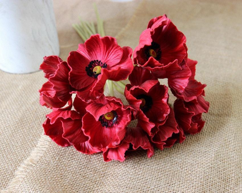 Elegant Realistic PU Poppy Flower Arrangement - Set of 10